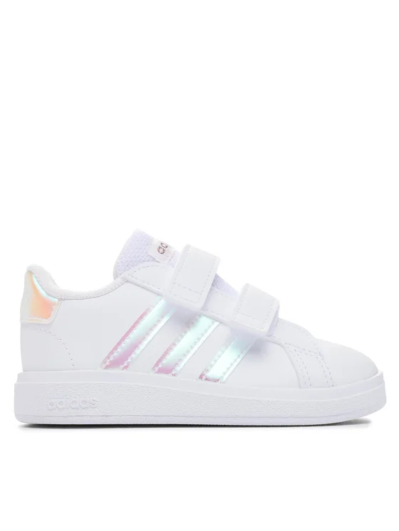 Εσύ ξέρεις ότι αυτό είναι το κλασικό μοντέλο adidas Grand Court. Το παιδί σου όμως ξέρει ότι φοράει παπούτσια σαν τα δικά σου. Γι' αυτό ακριβώς επιλέγεις το στυλ με τις 3 ρίγες σε αυτή την αξιολάτρευτη έκδοση για τους μικρότερους. Τα παπούτσια slip-on έχουν εύκαμπτο μπροστινό μέρος, ώστε το μικρό σου να μπορεί εύκολα να περπατάει, να κάνει μικρά βήματα και να τρέχει. Και σύντομα θα φουσκώνει από περηφάνια όταν κουμπώσει μόνο του τα velcro για πρώτη φορά.
