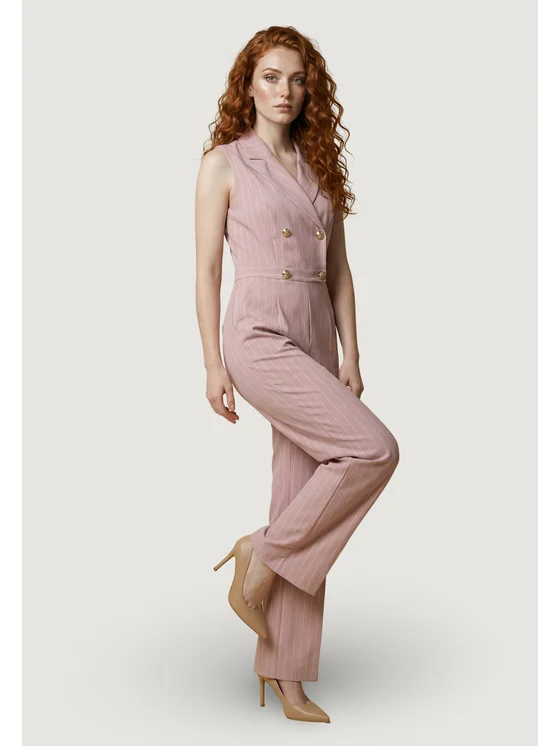 Η κομψή ολόσωμη φόρμα Artigli GESSATA ACTU004633 είναι η ιδανική επιλογή για γυναίκες που θέλουν να ξεχωρίσουν με στυλ και φινέτσα. Κατασκευασμένη από 92% πολυεστέρα, 4% βισκόζη και 4% ελαστάνη/λύκρα, προσφέρει άνετη και ελαφρώς ελαστική εφαρμογή που αναδεικνύει τη γυναικεία σιλουέτα. Το αμάνικο σχέδιο με γιακά και διπλό κούμπωμα με χρυσά κουμπιά προσθέτει μια μοντέρνα και εκλεπτυσμένη πινελιά. Το κάθετο ριγέ μοτίβο επιμηκύνει τη σιλουέτα, ενώ η ραμμένη γραμμή την καθιστά ιδανική για τελετές, επίσημες εκδηλώσεις ή ιδιαίτερες περιστάσεις. Η συνδυασμένη ζώνη τονίζει τη μέση, προσθέτοντας κομψότητα και θηλυκότητα. Ένα ευέλικτο και κομψό κομμάτι για τη γυναίκα που αγαπά να ξεχωρίζει με κλάση.