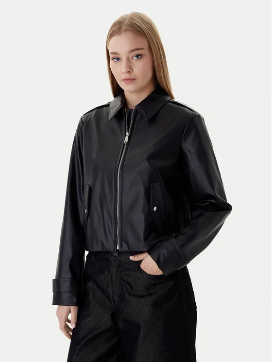 Calvin Klein Jeans Μπουφάν από απομίμηση δέρματος Moto LV047E501G Μαύρο Regular Fit