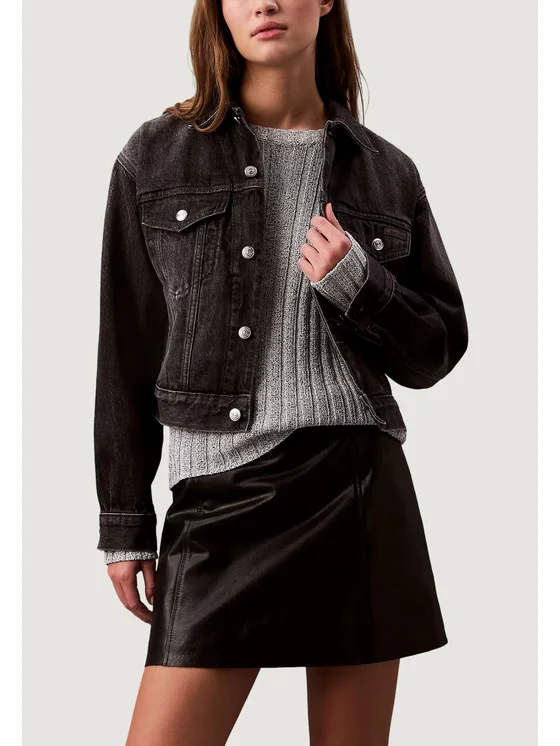 Calvin Klein Jeans Μπουφάν δερμάτινο 90s TRUCKER BLACK FO Μαύρο Casual Fit