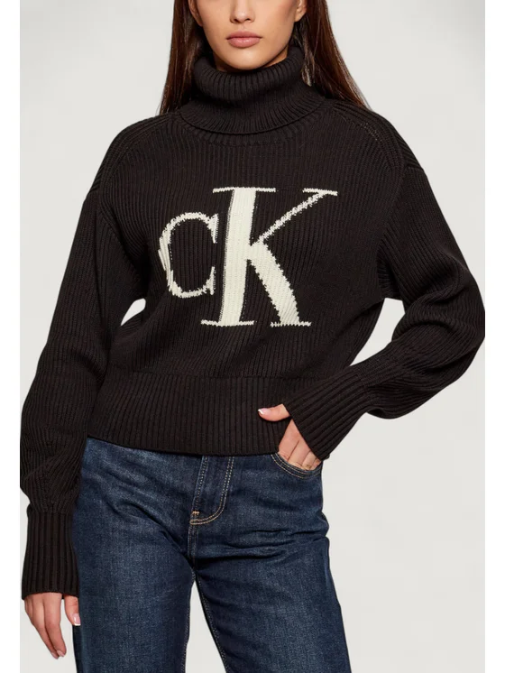 Calvin Klein Jeans Πουλόβερ BLOWN UP CK LOOSE SWEATER CONTRA Μαύρο Loose Fit