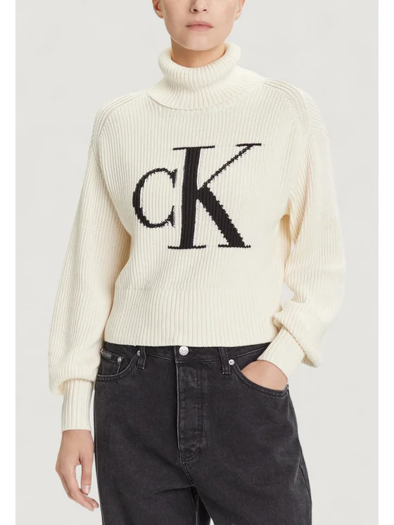 Calvin Klein Jeans Πουλόβερ BLOWN UP CK LOOSE SWEATER CONTRA Μπεζ Loose Fit