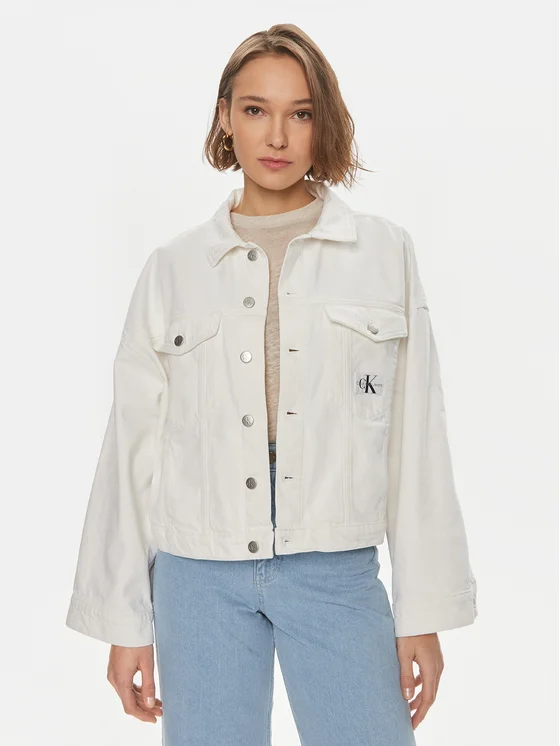 Calvin Klein Jeans Τζιν μπουφάν J20J223430 Λευκό Relaxed Fit