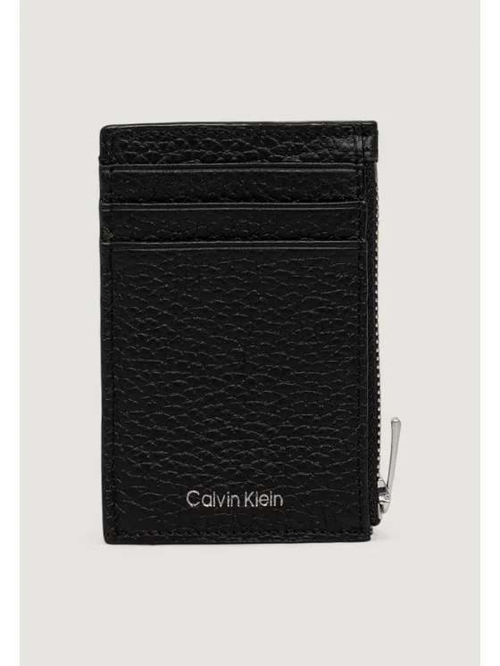 Πορτοφόλι CK LEATHER N/S ZIP CARD CASE Μαύρο