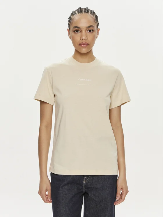 Calvin Klein T-Shirt Multi Logo K20K207215 Μπεζ Regular Fit