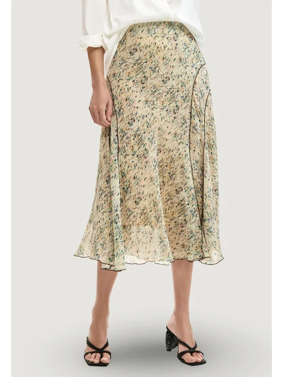 Η γυναικεία φούστα longuette Desigual FAL_RISHIT 26SWFW18 είναι ένα κομψό και δροσερό κομμάτι, κατασκευασμένο εξ’ ολοκλήρου από υψηλής ποιότητας πολυεστέρα. Το ανάλαφρο και διακριτικά διάφανο ύφασμά της αγκαλιάζει όμορφα το σώμα και αναδεικνύει την κίνηση σε κάθε βήμα. Ο σχεδιασμός φέρει φανταχτερό μοτίβο, διακοσμημένο με διακριτικές ραφές σε αντίθεση που τονίζουν τις γραμμές και προσθέτουν ξεχωριστή πινελιά. Ιδανική επιλογή για την άνοιξη και το καλοκαίρι, μπορεί να συνδυαστεί εύκολα τόσο με χαλαρή μπλούζα όσο και με κομψά πέδιλα και αξεσουάρ.