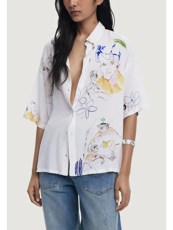 Desigual Πουκάμισο CAM CRAY Λευκό Casual Fit