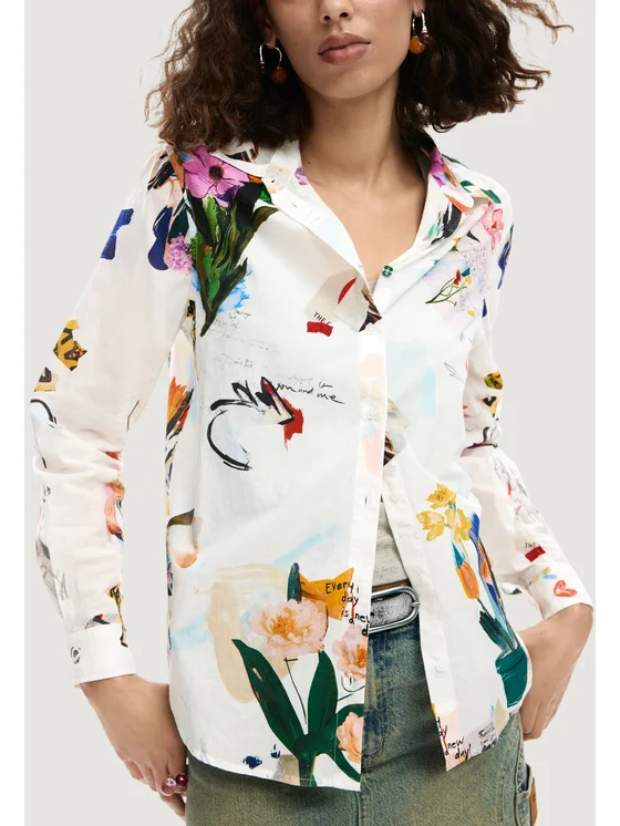 Το γυναικείο πουκάμισο με μακριά μανίκια Desigual CAM_MILA (μοντέλο 26SWCW21) ξεχωρίζει για τον δημιουργικό και ζωντανό του σχεδιασμό, με καλλιτεχνικό φλοράλ μοτίβο και μοναδικές γραφιστικές λεπτομέρειες. Κατασκευασμένο από 100% βαμβάκι, προσφέρει άνετη και διαπνέουσα εφαρμογή, ιδανικό για τις μεταβατικές εποχές και για να προσθέσετε μια πρωτότυπη πινελιά σε casual ή κομψές εμφανίσεις. Η κλασική γραμμή με γιακά και μπροστινό κούμπωμα το καθιστά ευέλικτο και εύκολο να συνδυαστεί με παντελόνια ή φούστες. Ένα τέλειο κομμάτι για όσες αναζητούν στυλ και ποιότητα Desigual.
