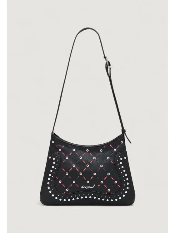 Ο μέσος γυναικείος σάκος Desigual BAG_YANKE MANAOS 25WAXP38 είναι το ιδανικό αξεσουάρ για όσους αναζητούν στυλ και πρακτικότητα. Κατασκευασμένη από 100% πολυουρεθάνη, αυτή η τσάντα διαθέτει ένα μοντέρνο σχέδιο στολισμένο με διάτρητες λεπτομέρειες και αντίθετα ένθετα με γεωμετρικά μοτίβα. Η ελαστική σιλουέτα και ο ρυθμιζόμενος ιμάντας ώμου εξασφαλίζουν μια άνετη εφαρμογή για κάθε μέρα, ενώ το άνω κλείσιμο εγγυάται ασφάλεια στα προσωπικά σας αντικείμενα. Ιδανικό για να συνοδεύσετε casual και urban chic ρούχα, αυτή η τσάντα προσφέρει αρκετό χώρο για το πορτοφόλι, smartphones και άλλα βασικά στοιχεία, με αποτέλεσμα να γίνει ένα must-have για την εποχή.