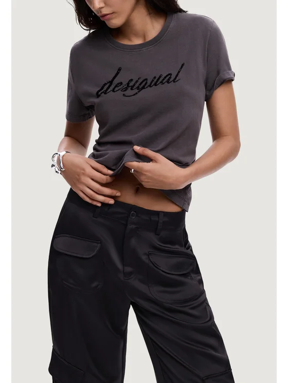 Desigual T-Shirt TS_VARSOVIA Γκρι Casual Fit