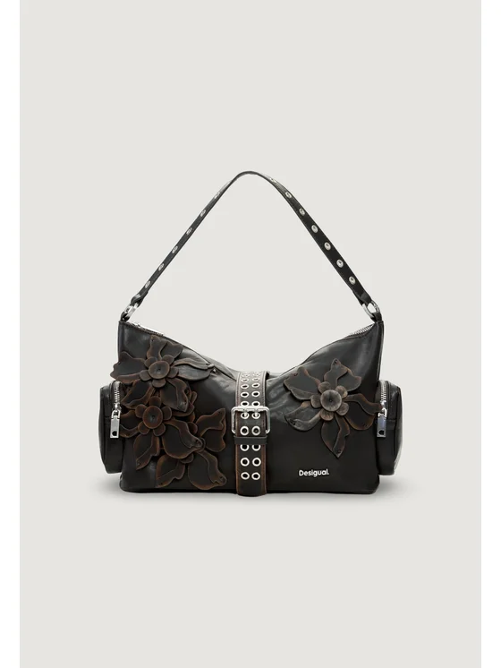 Η μεσαία γυναικεία τσάντα Desigual BAG_CURIO CHOCO NEW B 26SAXP98 αποτελεί ένα μοντέρνο αξεσουάρ, ιδανικό για κάθε περίσταση. Κατασκευασμένη εξ ολοκλήρου από πολυεστέρα, προσφέρει ελαφρότητα και ανθεκτικότητα. Ο σύγχρονος σχεδιασμός της διακοσμείται με ανάγλυφα λουλούδια στο μπροστινό μέρος και κεντρικό κλείσιμο με μεταλλικά τρουκς, προσδίδοντας μια πρωτότυπη και σύγχρονη πινελιά. Η ρυθμιζόμενη λαβή ώμου με μεταλλικά τρουκς εξασφαλίζει άνετη μεταφορά. Διαθέτει πρακτικές πλαϊνές τσέπες με φερμουάρ και ευρύχωρη εσωτερική θήκη, ιδανική για όσες επιθυμούν να συνδυάσουν στυλ και λειτουργικότητα στην καθημερινότητά τους.