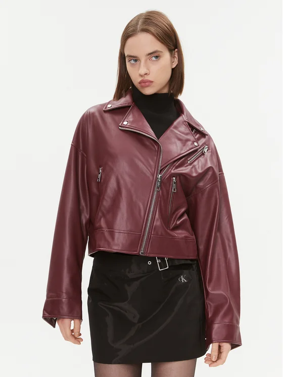 DKNY Μπουφάν δερμάτινο P3GCTQ52 Μπορντό Regular Fit