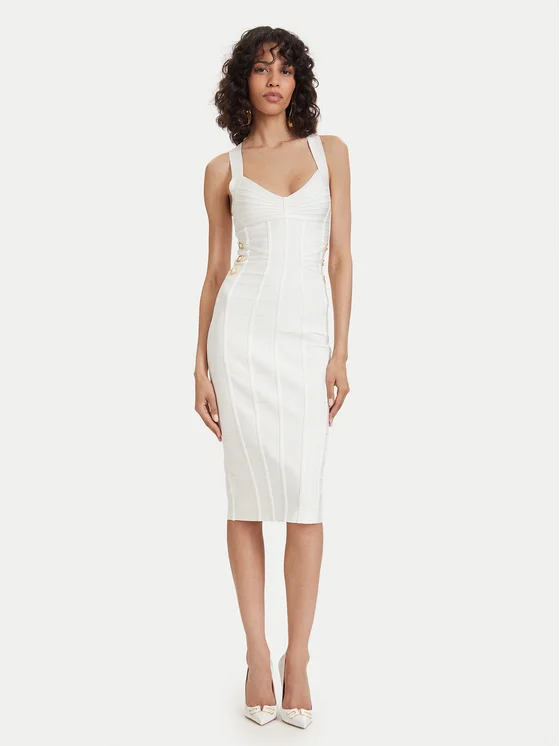 Elisabetta Franchi Φόρεμα κοκτέιλ AM-24D-62E2-V790 Λευκό Slim Fit