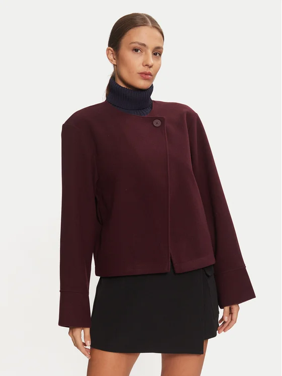 Μακριά μανίκια, βαριά μανίκια που πέφτουν. Γενικά, η κοπή είναι χαλαρή, χωρίς επένδυση. Χρώμα - δαμάσκηνο. Ξαναφτιάχνω το μανίκι ραμμένο, γιατί φαίνεται πολύ φαρδύ στους ώμους. Γυρίζω το μανίκι, φαίνεται εντάξει.