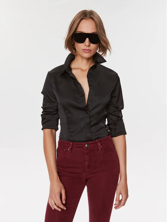 Guess Πουκάμισο Fernanda W3BH66 WFQC2 Μαύρο Slim Fit