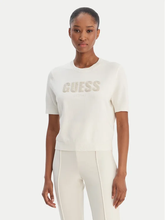 Guess Πουλόβερ W6RR47 Z2NQ2 Εκρού Regular Fit