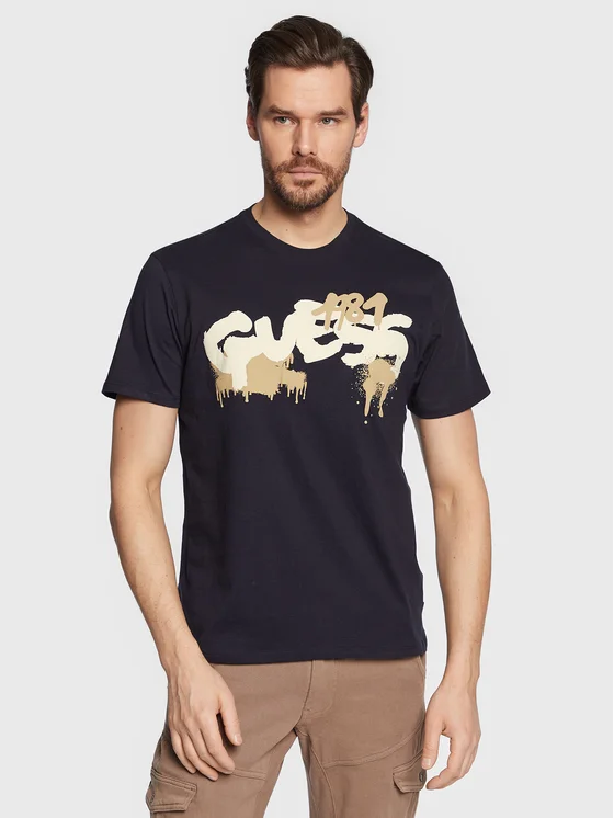 Guess T-Shirt Graffiti Logo M3GI59 K9RM1 Σκούρο μπλε Slim Fit