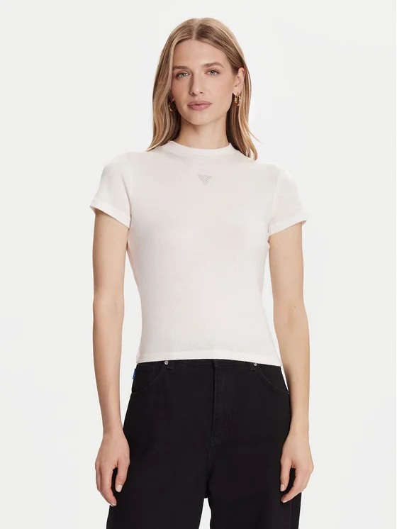 Guess T-Shirt W5BP07 KCGM2 Εκρού Slim Fit