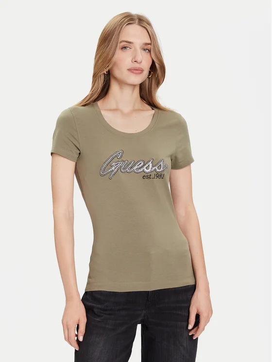 Guess T-Shirt W5YI16 J1314 Πράσινο Regular Fit