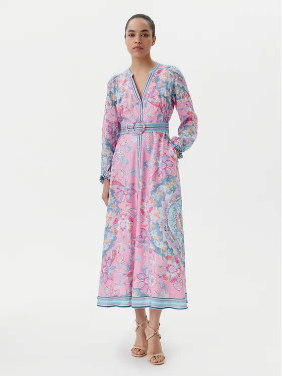 Φόρεμα καλοκαιρινό with linen 4ZCA612M Ροζ Regular Fit