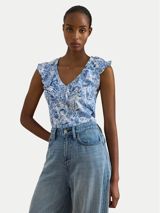 LAUREN RALPH LAUREN Μπλουζάκι 200P13316001 Ανοιχτό μπλε Slim Fit
