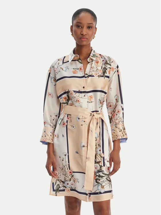 Φόρεμα πουκάμισο WA6507 T2555 Μπεζ Regular Fit