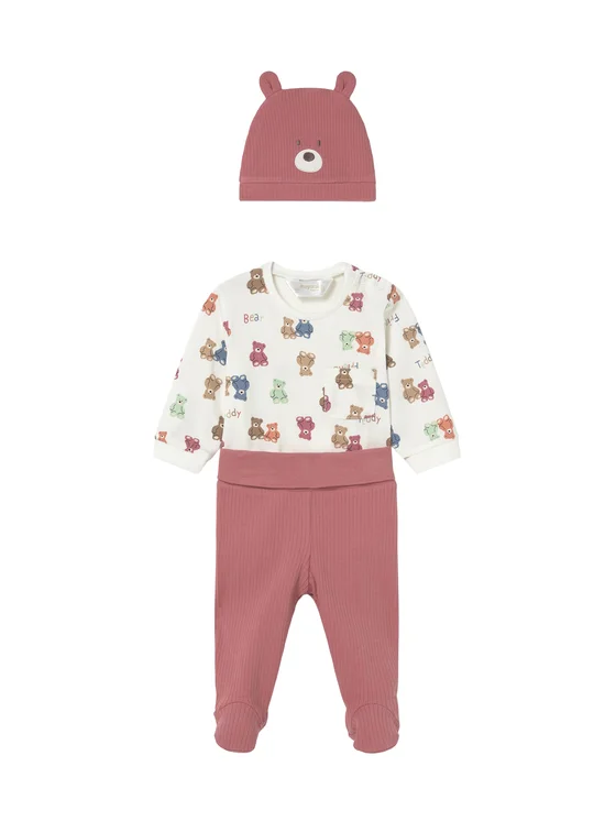 Το σετ περιλαμβάνει:Σκούφος, Παντελονάκι με κλειστά ποδαράκια, κορμάκι
