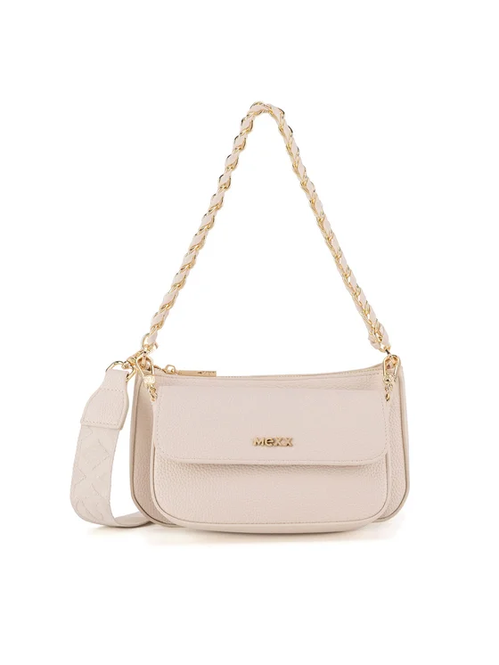 Η μπεζ τσάντα Mexx είναι η ιδανική επιλογή για γυναίκες που εκτιμούν την κομψότητα και τη λειτουργικότητα. Κατασκευασμένη από υψηλής ποιότητας συνθετικό υλικό, χαρακτηρίζεται από σκληρή δομή, που της εξασφαλίζει ανθεκτικότητα και στιλάτη εμφάνιση. Ένα πρακτικό φερμουάρ εγγυάται την ασφάλεια των αποθηκευμένων αντικειμένων, ενώ ο ρυθμιζόμενος ιμάντας ώμου επιτρέπει την άνετη προσαρμογή της τσάντας στη σιλουέτα σου. Επιπλέον, ο αποσπώμενος ιμάντας και η πρακτική αποσπώμενη θήκη αυξάνουν τη λειτουργικότητά της, καθιστώντας την εξαιρετικά πρακτικό αξεσουάρ για κάθε εμφάνιση. Είναι μια τσάντα που συνδυάζει κομψότητα και άνεση – πρέπει να την έχεις!