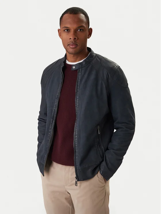 Milestone Μπουφάν δερμάτινο Nevio 612203 60780 Σκούρο μπλε Regular Fit