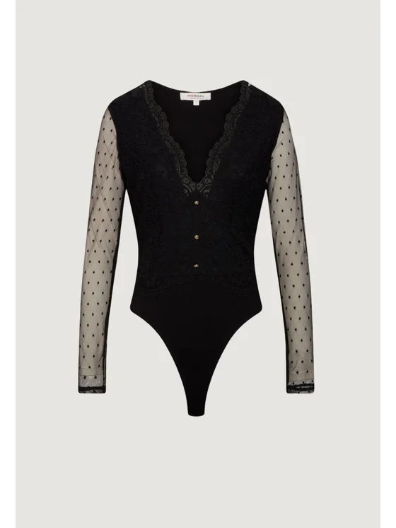 Το γυναικείο κορμάκι Morgan De Toi 261-TPLAZA είναι η ιδανική επιλογή για όσες αναζητούν κομψότητα και φινέτσα. Κατασκευασμένο από 72% πολυαμίδιο, 24% βισκόζη και 4% ελαστάνη/λύκρα, προσφέρει άνετη και εφαρμοστή αίσθηση. Διαθέτει βαθύ ντεκολτέ σε σχήμα V διακοσμημένο με δαντέλα, μπροστινό κούμπωμα με κουμπιά και μακριά μανίκια από διαφανές τούλι με πουά σχέδιο, προσθέτοντας μια θηλυκή και σικ πινελιά. Ιδανικό για ιδιαίτερες περιστάσεις, βραδινές εξόδους ή για να αναβαθμίσετε το καθημερινό σας στυλ.
