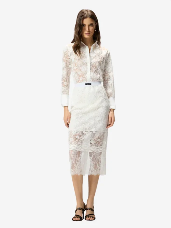 Φούστα midi HARMONIE GONNA PIZZO REBRODE Λευκό Slim Fit