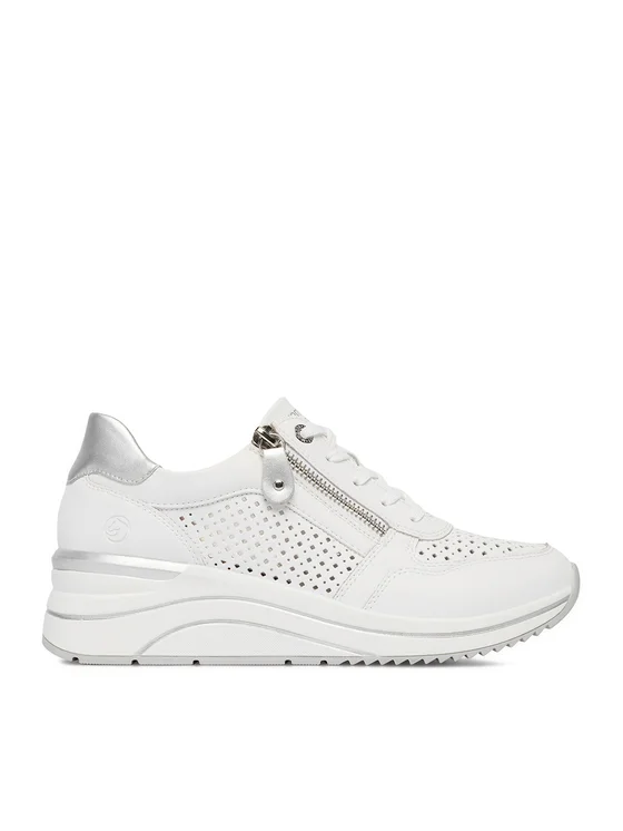 Τα μπεζ γυναικεία αθλητικά παπούτσια της μάρκας Remonte είναι η πεμπτουσία της άνεσης και του στυλ. Κατασκευασμένα από συνθετικό υλικό υψηλής ποιότητας, εξασφαλίζουν ανθεκτικότητα και άνεση για καθημερινή χρήση. Η πλατφόρμα προσθέτει κομψότητα και ανυψώνει ελαφρώς τη σιλουέτα, εξασφαλίζοντας παράλληλα σταθερότητα. Χάρη στην τεχνολογία Remonte Soft, τα παπούτσια προσφέρουν εξαιρετική μαλακότητα και ευελιξία, που μεταφράζεται σε άριστη απορρόφηση κραδασμών και υποστήριξη για τα πόδια κατά τη διάρκεια παρατεταμένης χρήσης. Το πρόσθετο φερμουάρ που διευρύνει το πάνω μέρος διευκολύνει την τοποθέτηση και αφαίρεση των παπουτσιών, εξασφαλίζοντας τέλεια εφαρμογή σε κάθε πόδι. Η τέλεια επιλογή για κάθε περίσταση!