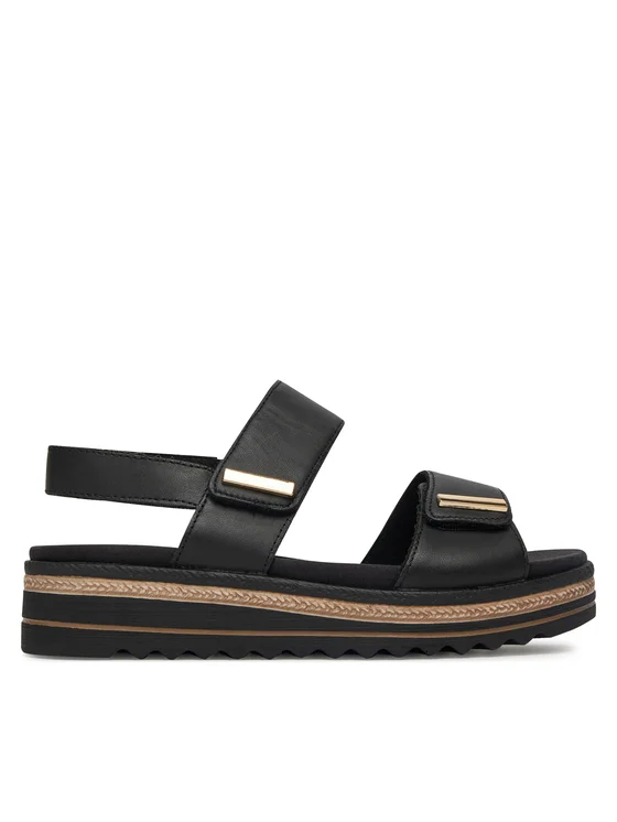 Οι σανδάλια της μάρκας Remonte είναι η ιδανική επιλογή για κάθε γυναίκα που εκτιμά την άνεση και την κομψότητα. Διατηρημένα σε κλασικό μαύρο χρώμα, αυτά τα δερμάτινα παπούτσια ταιριάζουν τέλεια τόσο σε casual όσο και σε πιο επίσημες εμφανίσεις. Το κλείσιμο με ταινία Velcro εγγυάται ευκολία στο ντύσιμο και ιδανική προσαρμογή στο σχήμα του ποδιού. Κατασκευασμένα από υψηλής ποιότητας δέρμα, δεν είναι μόνο ανθεκτικά αλλά και εξαιρετικά άνετα. Επίλεξε τα σανδάλια Remonte και απόλαυσε την άνεση και το στυλ όλη μέρα.