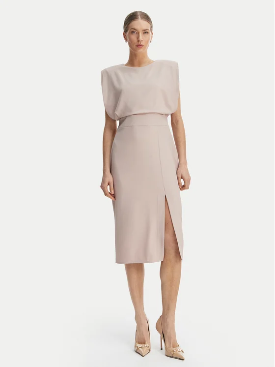 Rinascimento Φόρεμα κοκτέιλ CFC0127570003 Μπεζ Slim Fit