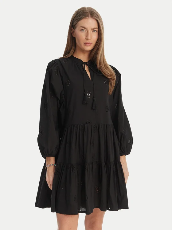 Φόρεμα καλοκαιρινό Embroidery 54155-DR Μαύρο Regular Fit