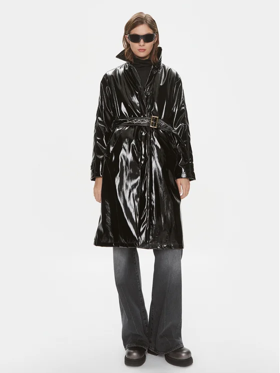 Silvian Heach Παλτό από τεχνητό δέρμα CVA23215TR Μαύρο Regular Fit