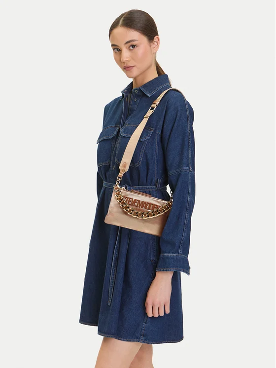 Η τσάντα Steve Madden είναι η πεμπτουσία του μοντέρνου στυλ και της λειτουργικότητας. Κατασκευασμένη από απομίμηση δέρματος, εντυπωσιάζει με την ανθεκτικότητα και την κομψή της εμφάνιση. Το μικρό της μέγεθος την καθιστά ιδανική για την αποθήκευση των πιο σημαντικών μικροαντικειμένων, ενώ η σκληρή κατασκευή της εξασφαλίζει αισθητικό σχήμα για μεγάλο χρονικό διάστημα. Το αποσπώμενο λουρί επιτρέπει να φορεθεί η τσάντα στον ώμο, και η αφαιρούμενη λαβή δίνει τη δυνατότητα προσαρμογής της σε διαφορετικά στυλ και περιστάσεις. Είναι ένα τέλειο αξεσουάρ για απαιτητικές γυναίκες που εκτιμούν το μοντέρνο σχεδιασμό και την πρακτικότητα σε ένα!