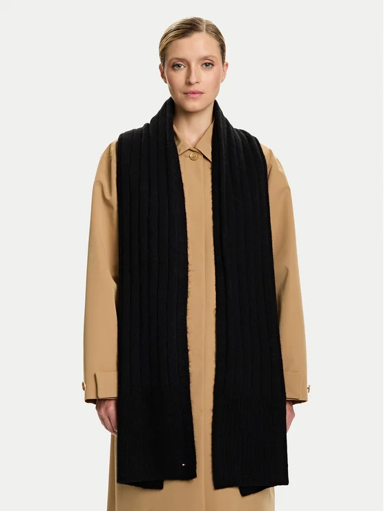 Tommy Hilfiger Κασκόλ Flag Fluffy AW0AW17787 Μαύρο