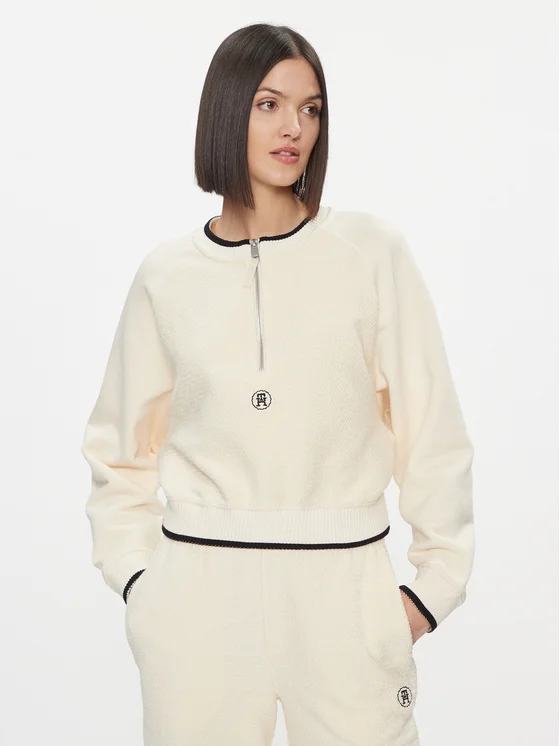 Tommy Hilfiger Μπλούζα Smd Texture 1/2 Zip Swt Shirt WW0WW40574 Εκρού Regular Fit