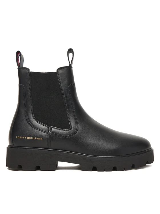 Tommy Hilfiger Μποτάκια με λάστιχο Lthr Low Chelsea FW0FW08775 Μαύρο