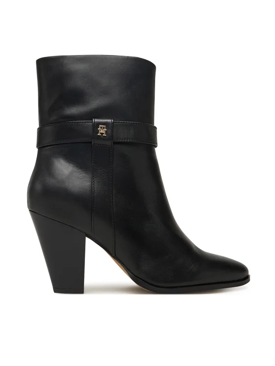 Tommy Hilfiger Μποτάκια Th T-Strap Leather Pointy Bootie FW0FW08984 Μαύρο
