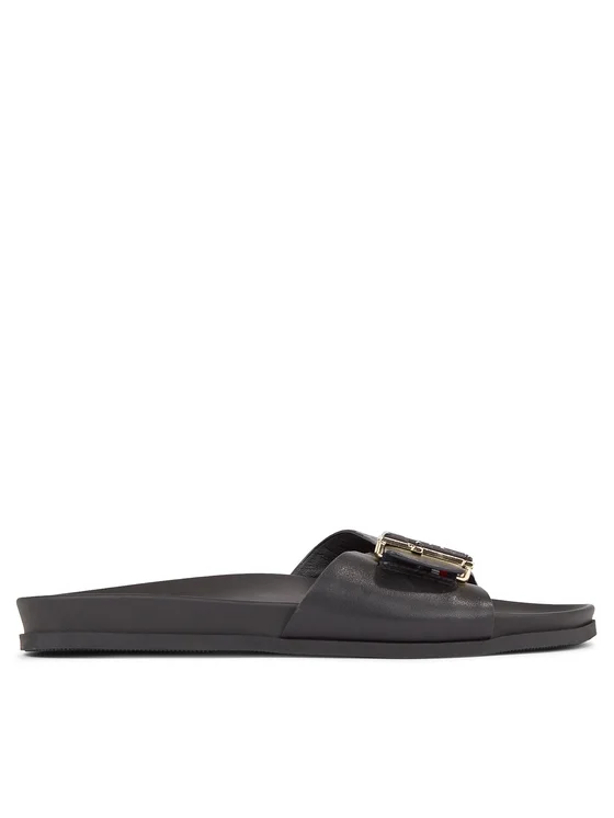 Tommy Hilfiger Παντόφλες Th Hardware Leather Flat Sandal FW0FW07940 Μαύρο