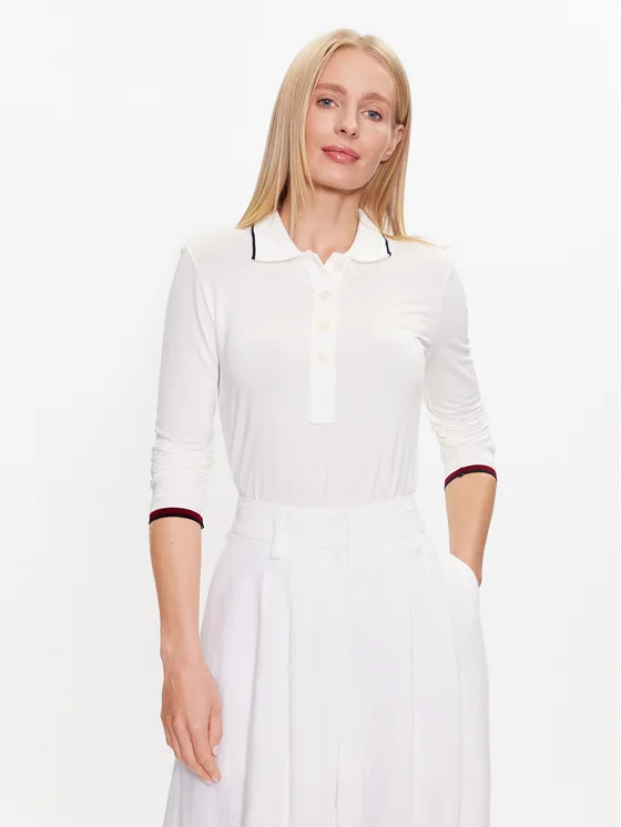 Tommy Hilfiger Polo Split Global WW0WW38831 Εκρού Slim Fit