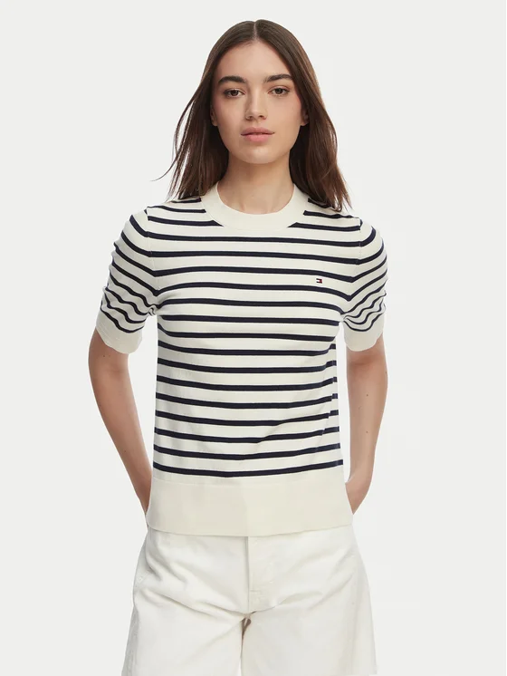 Tommy Hilfiger Πουλόβερ WW0WW49705 Λευκό Slim Fit