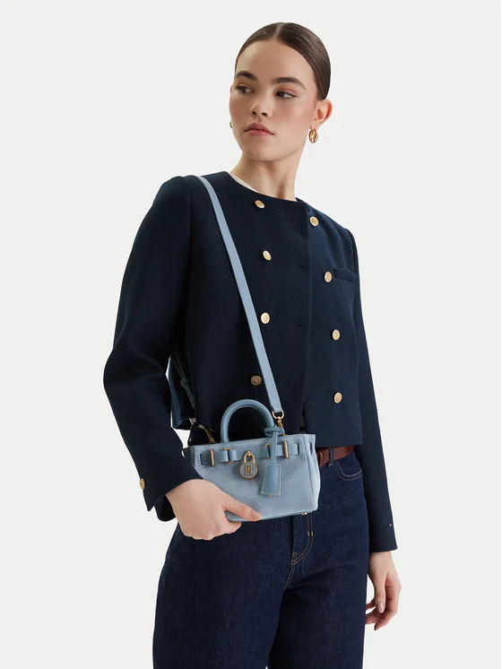 Tommy Hilfiger Τσάντα American Icon Micro Tote Suede AW0AW18853 Γαλάζιο