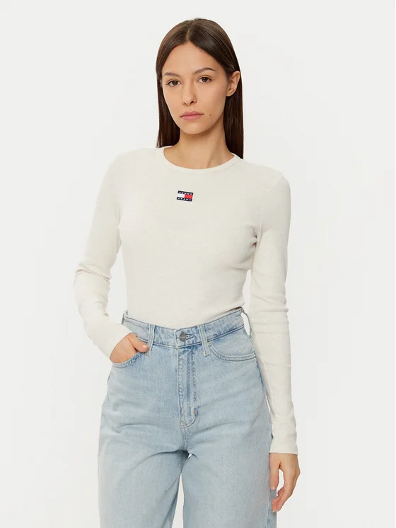 Tommy Jeans Μπλουζάκι DW0DW20178 Εκρού Slim Fit