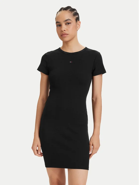 Tommy Jeans Φόρεμα καλοκαιρινό Flag DW0DW22613 Μαύρο Slim Fit