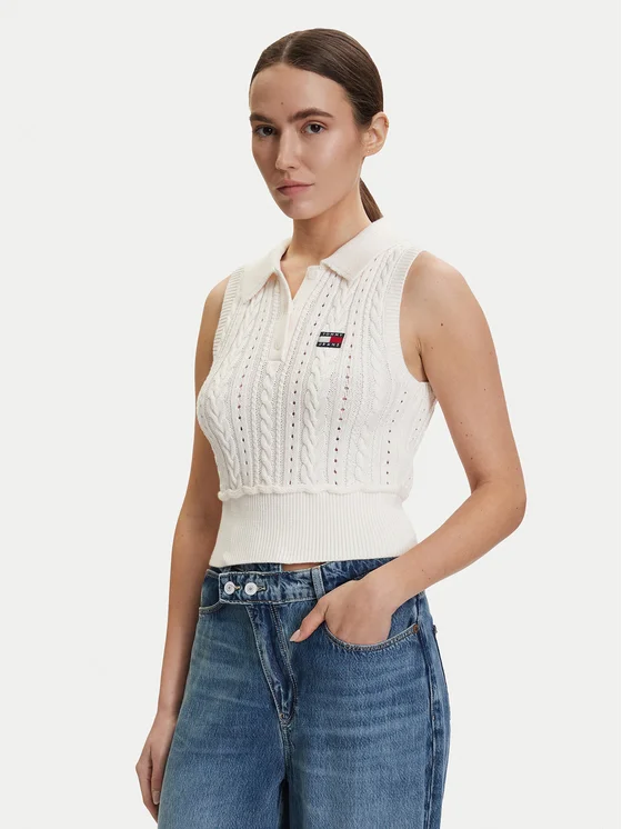 Tommy Jeans Πουλόβερ DW0DW22318 Λευκό Regular Fit