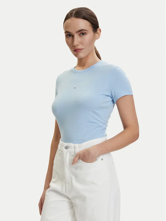 T-Shirt DW0DW18398 Ανοιχτό μπλε Slim Fit