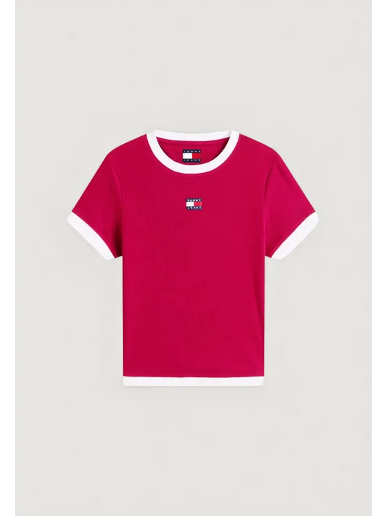 Ανακαλύψτε το γυναικείο κοντομάνικο t-shirt Tommy Hilfiger Jeans DW0DW22575, ιδανικό για casual και σύγχρονο στυλ. Κατασκευασμένο από 95% αναγεννημένο βαμβάκι και 5% ελαστάνη/lycra, αυτό το t-shirt προσφέρει άνεση, ελαστικότητα και εφαρμογή που αναδεικνύει τη σιλουέτα. Ο σχεδιασμός ξεχωρίζει με τις αντιθετικές λεπτομέρειες σε γιακά, μανίκια και τελείωμα, ενώ το κεντημένο λογότυπο Tommy Hilfiger στο στήθος προσθέτει μια εμβληματική και εκλεπτυσμένη πινελιά. Ιδανικό για την άνοιξη και το καλοκαίρι, αυτό το t-shirt είναι ευέλικτο και κατάλληλο για χαλαρές στιγμές ή urban εμφανίσεις με δυναμικό χαρακτήρα.